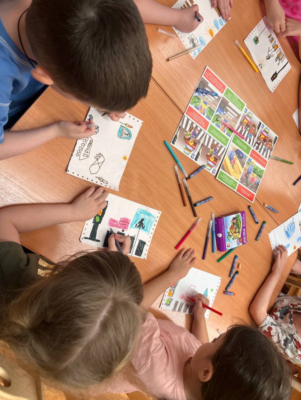 Тематические занятия – дети в увлекательной форме повторили правила поведения на дороге, во дворах и в общественном транспорте.